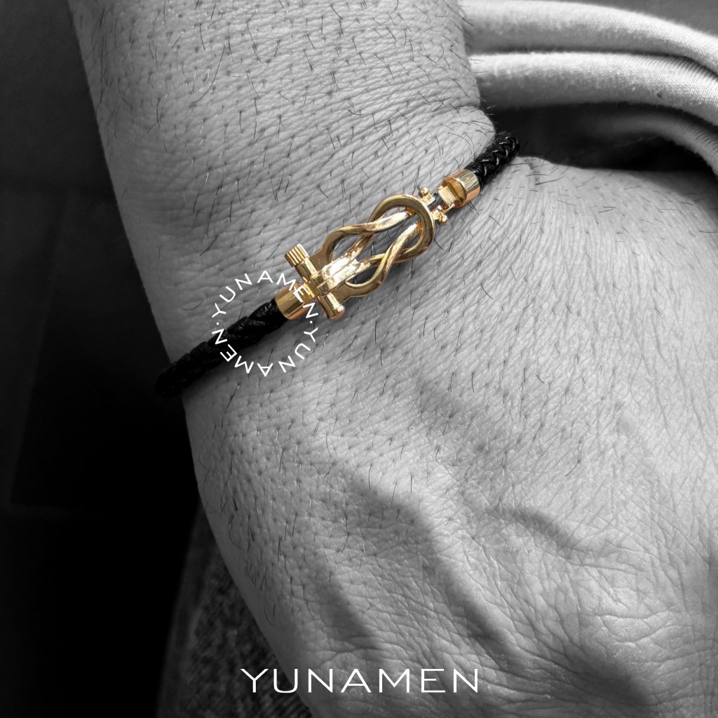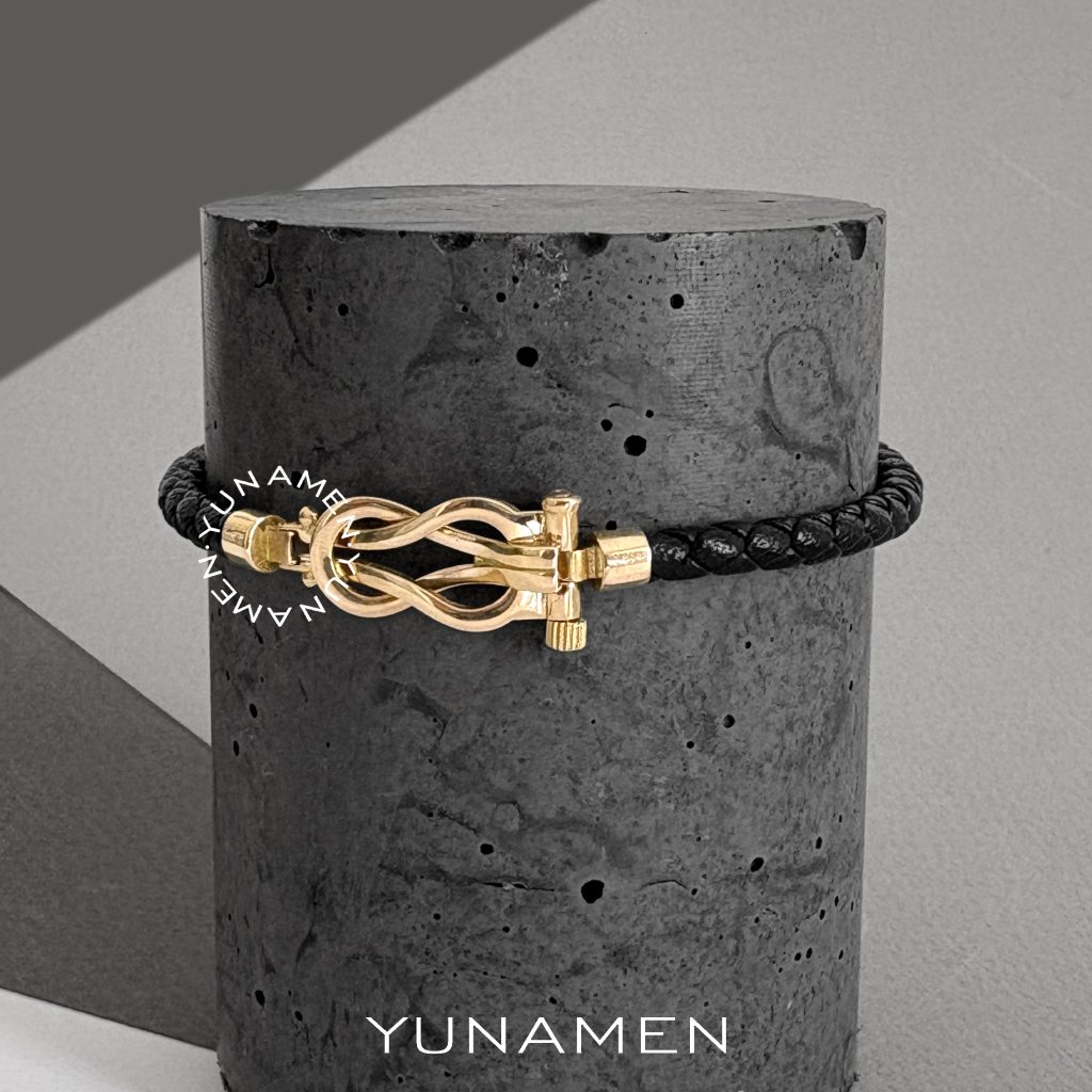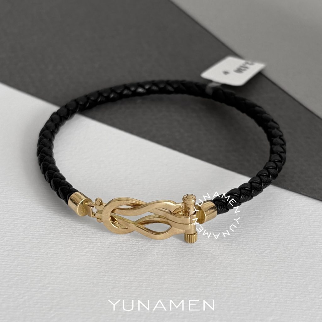 دستبند چرم و طلا اومگا مشکی مردانه Y185